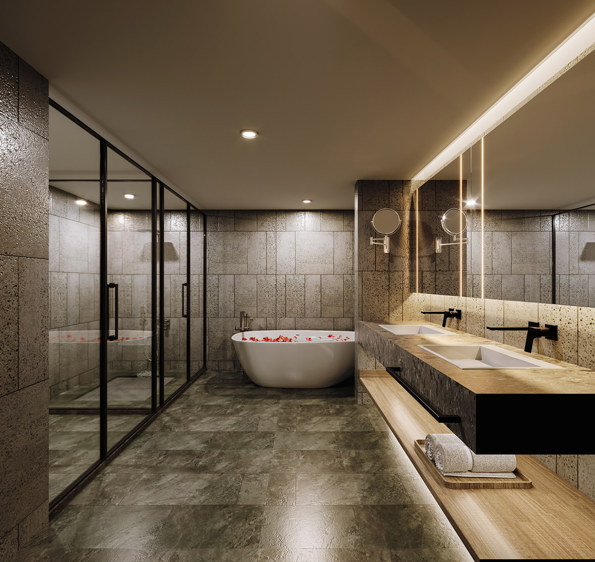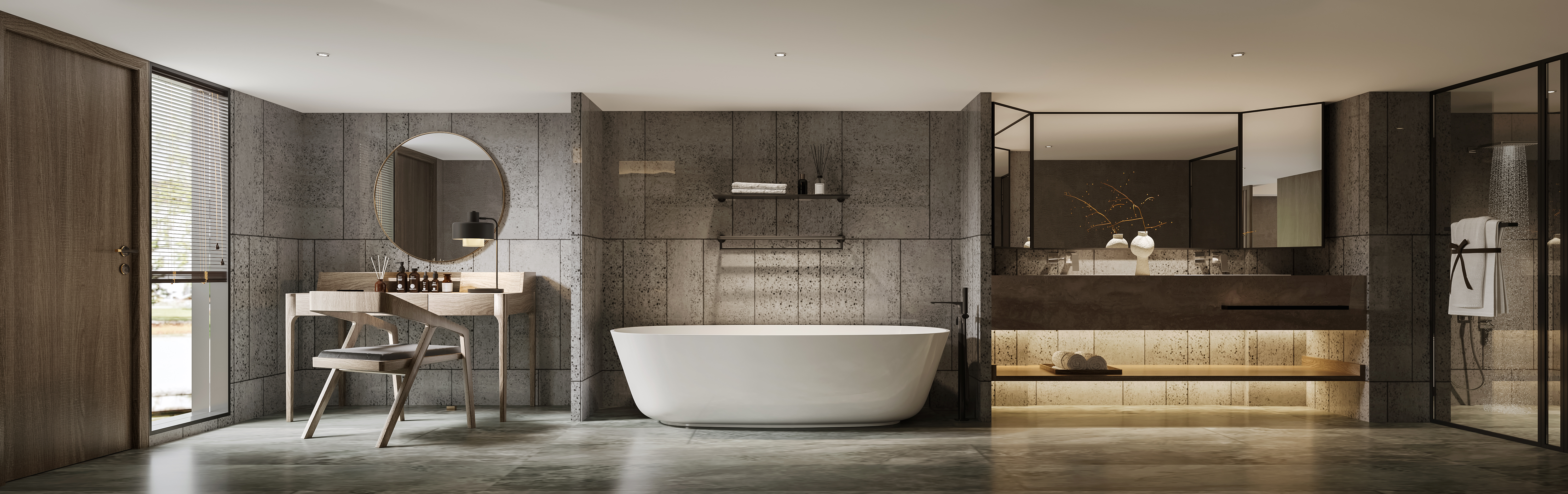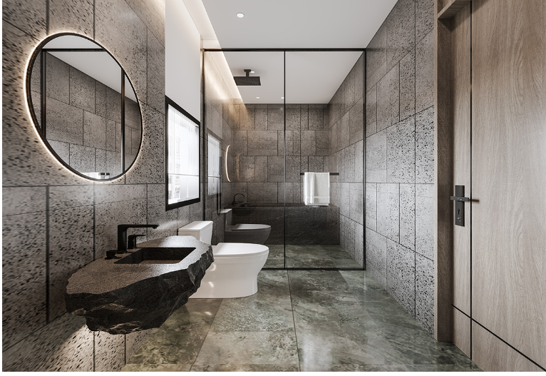 牆地面用(yòng)水(shuǐ)泥色的(de)磚和(hé)原木(mù)色相搭配,讓精緻在天然質樸之間遊離。